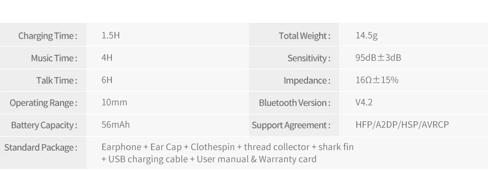 Bluetooth V4.2 Casque fone de ouvido Ecouteur