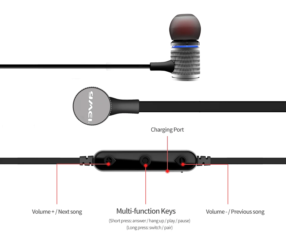 AWEI T12 Bluetooth Headphone Blutooth Earphone Wireless Headset Auriculares kulakl k Cordless Earpiece Casque Earbuds For Phone